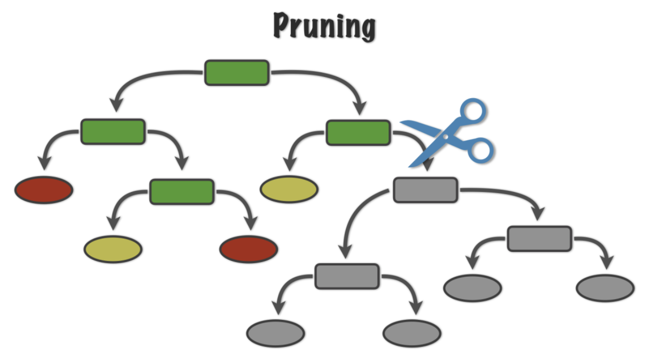 해석의 의미 그대로 '가지치기'인데 이를 통하여 우리는 데이터들에 대해 완벽한 classification을 할 수는 없지만 Test data도 훌륭하게 classfication을 할 수 있는 decision tree를 구성하면 됩니다.