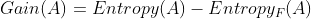 Entropy_F(A) -> Feature A로 분류된 데이터들의 Entropy의 총합계