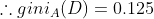 먼저 입력 데이터에 대한 gini(D)를 구하고,