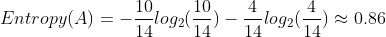 그렇다면 어떻게 entropy가 계산되는지 알아보도록 하겠습니다. 아래의 수식은 모집단 A에 대한 엔트로피를 계산하는 식 입니다.