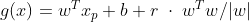x도 g(x)와 동일한 방향의 직선을 그리면 아래와 같이 구할 수 있는데 이를 통하여 g(x)에 대입하여 풀면 margin을 구할 수 있습니다.