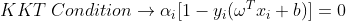 KKT Condition이란, α가 0인지 아닌지에 따라 나뉩니다. KKT 조건에서 알파 값이 0이 아니고 조건식이 1이면 x_i는 서포터 벡터