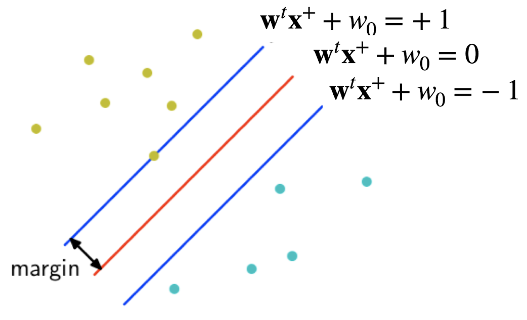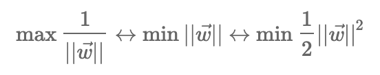 우리는 위 식에서 width를 최대화시켜주기 위해서 w를 최소화를 시켜야 하는 문제를 풀어야 합니다.