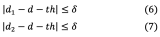 두 번째 방법으로는 세그먼트 된 라인들로 가운데 있는 직선과 좌우에 있는 직선의 두께가 0.2m이고 기존에 구한 직선 d, d1, d2를 논문에 기재된 방정식 6, 7에 의해 두께 차이를 구한다. 이때 적절한 threshold로 “0.03m 이내에 들어와야 적절한 라인이다”라고 판별을 한다.