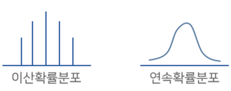위 그림처럼 이산 확률분포는 동전의 앞면과 뒷면, 주사위의 눈 등과 같이 셀 수 있는 확률변수를 가지는 분포를 의미하고, 연속 확률분포는 온도, 시간 등과 같이 셀 수 없는 확률변수를 가지는 분포를 의미합니다.