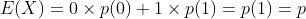 즉, 베르누이 분포의 평균은 시행 성공할 확률 p와 같습니다.
