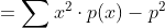 분산을 구하려면 확률변수 제곱의 평균 - 확률변수 평균의 제곱으로 구할 수 있는데