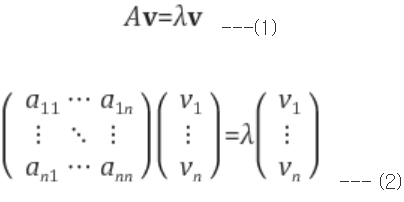 다시 말해 $ \lambda $는 행렬 $ A $의 고유값, $ \textbf{v} $는 행렬 $ A $의 $ \lambda $에 대한 고유벡터이다.