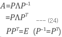 즉, 모든 대칭행렬은 위 식 (24)와 같이 직교행렬을 이용한 고유값 대각화가 가능하다.