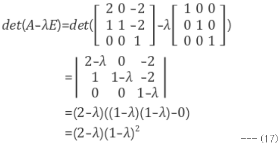 이므로 특성방정식은 (2-λ)(1-λ)2 = 0 이 된다.