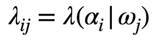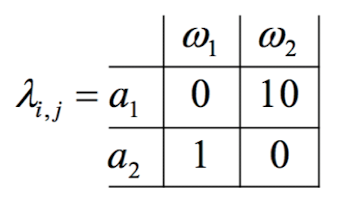 예를 들어 w1 class가 낚싯대에 잡혔을 때 action(낚시 방법)에 따른 Loss(낚싯대를 잃어버릴 확률)