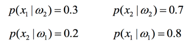 p(x1 | w1) 감기에 걸렸지만, 검사 결과가 negative가 뜬 경우 , p(x2 | w1) 감기에 걸렸지만, 검사 결과가 positive가 뜬 경우