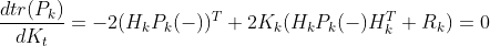 결국 추정치 공분산에 대한 값을 가장 작게 만들기 위해 위 식을 시간 t에 대해 미분을 하게 될 때