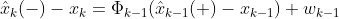위 오차에 대한 정의를 사용하면 관측 후 예측 오차에 대한 정의는 아래와 같이 나타 낼 수 있습니다.